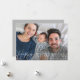 This elegant yet modern New Year photo card features elegant white typography over a full-bleed single, horizontal photo. The greeting on the front says "Happy New Year". This design accommodates a single, horizontal photo on the front of the card. On the reverse side you will find a simple grey and white diagonal stripe pattern which can be removed or customised. You can also add another photo or text to the back by selecting "customise design further".