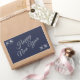 Modern and elegant Happy New year rectangular sticker with white sparkles on a navy blue background and trendy handwritten script. Simple sticker for wishing your friends and family happy New year. You can change the text if you want.