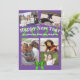 Flat, Happy New Year greeting cards with five photo templates. Purple and green design on 5x7 inch cards, with two lines of custom text. The new year numbers are green and match the bow between the photos at the bottom. Upload four horizontal / landscape photos and one portrait. Reverse is solid green.