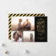 Cute modern New Years holiday photo card design features a photo collage with space for three of your family photos and fun whimsical typography that reads Happy New Year with a swirl embellishment frame and printed faux gold foil look. Personalise the design with your family's name and the year. Use the design tools to choose any background colour, edit the text fonts and colours and add more photos to create a one of a kind holiday photo card.