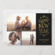 Happy New Year Faux Foil 3 Photo Collage Holiday Card