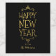 Custom printed wine bottle gift labels personalised with your family or business name or other custom text. This black and gold holiday design features whimsical faux gold foil Happy New Year text and fun modern fonts. Use the design tools to choose any background colour, edit the text fonts or upload your own photos to create a unique wine bottle tag for easy gifting to business colleagues and corporate clients this Christmas.