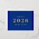 Happy New Year holiday post card postcard featuring blue colours and real foil on the front. Great for those looking for postcards to send to celebrate the new year. Nice blue colours. Custom text on the front. Use the template to create your own Happy New Year foil holiday postcard.