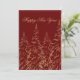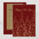 Happy New Year card. Elegant red background with faux gold pine trees in fairy lights. Add your own message on the back for your family and friends. This makes a great commercial business card too.