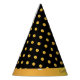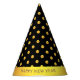 Happy New Year and golden polka dots on black background Party Hat. Happy New Year can be personalised. Happy New Year!