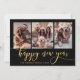 Happy New Year Gold Script 3 Photo Collage Black Holiday Card