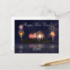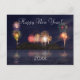 Beautiful and unique postcard to celebrate a new year with fireworks, castle, and champagne on the sea. A happy new year!