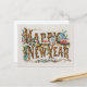 Happy New Year in Tree Trunks, Acorns and Flowers Postcard