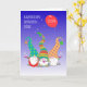 Three cute 'Tomtar' (traditional Scandinavian gnomes) are celebrating the New Year, 2024, together with goblets of steaming hot mulled wine as snow starts to fall gently. The gnomes have brightly coloured clothes, huge white beards, very tall hats that are pulled right down so that their faces are hidden, apart from their big noses! The front cover greeting is 'BLWYDDYN NEWYDD DDA!!' in fun white lettering on the dark blue background and the gnome on the right is holding the string to a bright red balloon with '2024' written on it, also in white lettering. The inside is left blank for you to add your own message.