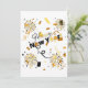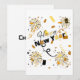 This invitation displays the words "Happy New Year" in a unique/bold print font with black & gold letters plus fireworks, confetti shapes and patterns in this New Years theme and style. Printed on a classic, all around paper 17.5 pt thickness with an uncoated matte finish with an eggshell texture made and printed in the USA with "Cheers!" printed on the back.