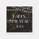 These new year party napkins feature string lights and faux gold black marble. Personalise them with a year. Matching party products are also available.
