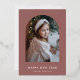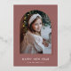 Welcome the new year in style with this modern holiday photo card, featuring your vertical photo showcased within a sleek mauve arch frame accented by a luxurious rose gold foil border. The phrase "Happy New Year" is displayed in elegant white lettering, along with your family name for a personalized touch. This foil New Year card combines contemporary design with a touch of elegance, making it a perfect choice for celebrating the season and sharing your warm wishes with loved ones.