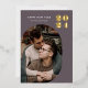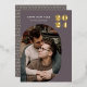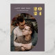 Modern personalised purple mauve New Year Greeting Card with real gold foil, a round geometric frame for your picture of choice and a modern geometric pattern on the back. All background colours - front and back - can be changed if you like.
