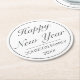 Happy New Year Modern Minimalist White Black Round Paper Coaster
