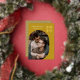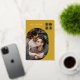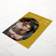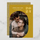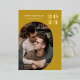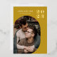 Modern personalised ochre golden yellow 2023 New Year Photo Greeting Card with real gold foil, a round geometric frame for your picture of choice and a modern geometric pattern on the back. All background colours - front and back - can be changed if you like.