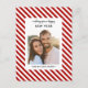 send new year cheer with this fun, modern red and white striped photo design, with space for your chosen photo and all editable text to make your message extra special