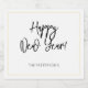 Cursive text on white background with Custom HAPPY NEW YEAR, NAME in black. Easy to personalise text, text colour, fonts. Great addition to any New Years Party Celebration. Modern, Timeless, Fun. Mix and match entire New Years Collection by TMCdesigns.