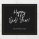 Cursive text on black background with Custom HAPPY NEW YEAR, NAME in white. Easy to personalise text, text colour, fonts. Great addition to any New Years Party Celebration. Modern, Timeless, Fun. Mix and match entire New Years Collection by TMCdesigns.