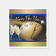 Package of 50 white paper cocktail napkins with an image of a clock with Saturn rings that is about to strike twelve, two glasses of champagne, and blue, black and gold confetti on brushed gold with royal blue borders. See matching cloth napkin. See the entire New Year Napkin collection under the HOME category in the HOLIDAYS section.
