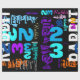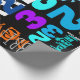Colourful design with large 2023 + Happy New Year + Rabbit + Rabbit ideogram. Design on wrapping paper with black background. You can easily change text( font, colour, size and position) and background colour by clicking the customise button.