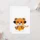 Year of the tiger illustrated with cartoon tiger on white with copy space.
