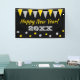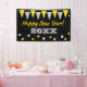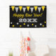 Custom Happy New Year party banner with bunting flags garland and confetti dots. Add your own name. Cheerful design with elegant typography template. Perfect for kids, friends, family, co worker, boss, husband, wife, dad, mum, teacher, colleague, nurse, employees, grandpa, grandma, children, business owner, etc. Personalised decorations for festive party. Also nice for anniversary, Birthday, corporate party, wedding or retirement celebration. Customisable yellow and grey (gold and silver like) colours.