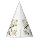 These party hats displays the words "Happy New Year" in a unique/bold print font with black & gold letters plus fireworks, confetti shapes and patterns in this New Years theme and style. All paper hats have an attached elastic string printed in full vibrant colours made in the USA has a Minimum of 12 order requirement.
