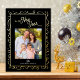 This Happy New Year photo card showcases shimmering gold foil details on a black background. The design features a confetti and streamer border and offers space for a photo and your name.
