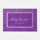 Modern Happy New Year doormat with a white script on a purple glitter background. Personalise with your family name or text.
