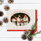 These simple 7" x 5" Christmas & holiday greeting cards feature a cameo shaped photo with the greeting, “Happy New Year” with red letters on a cream background and a coordinating dot backer to add the finishing touch.