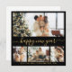 Happy New Year Script Black Gold 4 Photo Collage Holiday Card