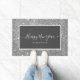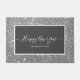 Happy New Year Doormat with a white script on a grey background embellished by a silver glitter backdrop. Personalise with your family name or text.