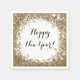 A white Happy New Year napkin with a printed gold glitter design and a script message. Edit using the text editor to make your own message if you'd like to. Perfect for both a casual and fancy New Year's Eve get together.