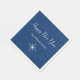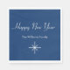 Happy New Year retro blue napkin, with a simple white snowflake design and customisable typography lettering. A simple yet festive addition to your New Year's party celebration.