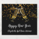 sparkling wine glasses sparkling wine labels for your New Year's eve party. Customise with your name. Toasting sparkling wine glasses and gold confetti.