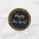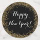 A black Happy New Year table decor confetti with a printed gold glitter design and a script message. Edit using the text editor to make your own message on each piece if you'd like to. Perfect for both a casual and fancy New Year's Eve get together to scatter on tables and surfaces.