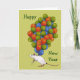 Happy New Year: White Mouse With LOTS of Balloons Holiday Card