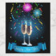 A Beautiful Black Happy New Year Wine Label That Makes A Great Party Gift Designed In Two sparkling wine Glasses And Fireworks
