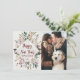 A modern winter floral and greenery design photo New Year's photo card with a festive red reverse side. Easy to edit or delete the text fields on the front to suit your personal requirements and change the photo to your own.