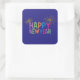 Square sticker with an image of “Happy New Year” printed in multi-coloured block lettering and two gold fireworks on royal blue. See matching custom-cut vinyl sticker, confetti, label and wrapping paper. See the entire New Year Sticker collection under the CARDS & STICKERS category in the HOLIDAYS section.