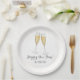 Happy New Years Party Champagne Watercolor Gold Paper Plate