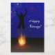 Persian New Year illustration featuring fire jumping festival Chahar-Shanbeh-Suri on the last Wednesday Eve of the year with fireworks and Happy Norooz greeting.