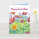A greeting card for nurses week decorated with a colourful garden of zinnias and yellow coreopsis painted with watercolor with blue on the inside. You can customise the text to fit your needs. A nice card to let nurses know how much they are appreciated.
