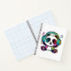 Happy Panda with headphones listening to music. Notebook