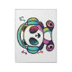 Happy Panda with headphones listening to music. Notepad