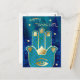 Happy Passover / Happy Pesach / Shalom at Pesach. Elegant Festive Hamsa Hand Lucky Symbol and Star of David design with gold foil embellishments Passover Postcard. Matching cards and gifts available in the Jewish Holidays Category of our store.