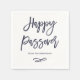 These simple and stylish Passover napkins feature modern script typography in midnight blue, on a white background.