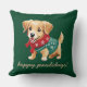 Make this holiday season extra special with our selection of custom decor holiday pillows. Featuring an adorable brown Golden Retriever puppy dressed in a snug green knitted sweater, a red scarf, and a playful Christmas greeting, "Happy Pawlidays!" The reverse side showcases a lovely red and green tartan plaid background, with an editable family monogram initial. Customise the text size, colour, font, and layout to create a personalised design that captures the spirit of the season.