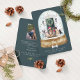Fun and festive Christmas holiday card perfect for pet care businesses such as pet sitter, pet groomer, pet care services, pet adoption, veterinarian and so much more! Design features our festive, and cosy watercolor front door decorated for the holiday season with a green foliage wreath within a beautiful faux golden snow globe. Twinkling faux gold stars and falling snow add a magical look to this snow globe pet care business holiday card. Cute dogs are sitting outside of the front door and wearing fun festive holiday hats and scarfs. "Happy Pawlidays" is displayed on the snow globe base in handwritten calligraphy. Customise with your business name and optional text arched over the door. The reverse side features a photo placeholder to display your own business photo, along with a personalised holiday greeting, name, and company name. All artwork is original artwork by Moodthology Papery.