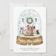 Fun and festive Christmas holiday card perfect for pet care businesses such as pet sitter, pet groomer, pet care services, pet adoption, veterinarian and so much more! Design features our festive, and cosy watercolor front door decorated for the holiday season with a green foliage wreath within a beautiful faux golden snow globe. Twinkling faux gold stars and falling snow add a magical look to this snow globe pet care business holiday card. Cute dogs are sitting outside of the front door and wearing fun festive holiday hats and scarfs. "Happy Pawlidays" is displayed on the snow globe base in handwritten calligraphy. Customise with your business name and optional text arched over the door. The reverse side features a photo placeholder to display your own business photo, along with a personalised holiday greeting, name, and company name. All artwork is original artwork by Moodthology Papery.